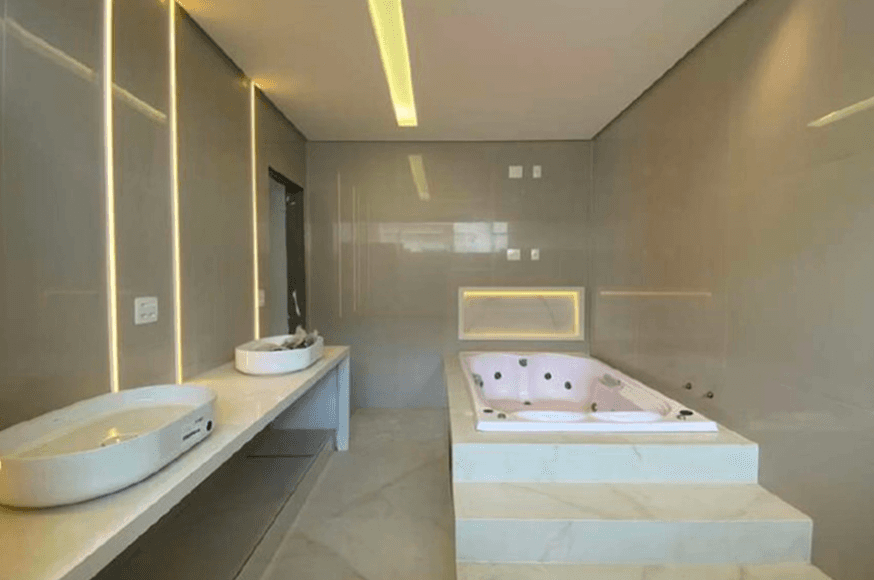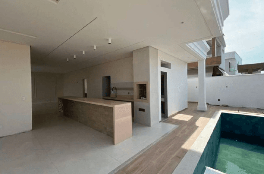 Residência de alto padrão com estrutura em concreto armado, áreas de lazer integradas e acabamentos premium, executada com atenção total aos detalhes.